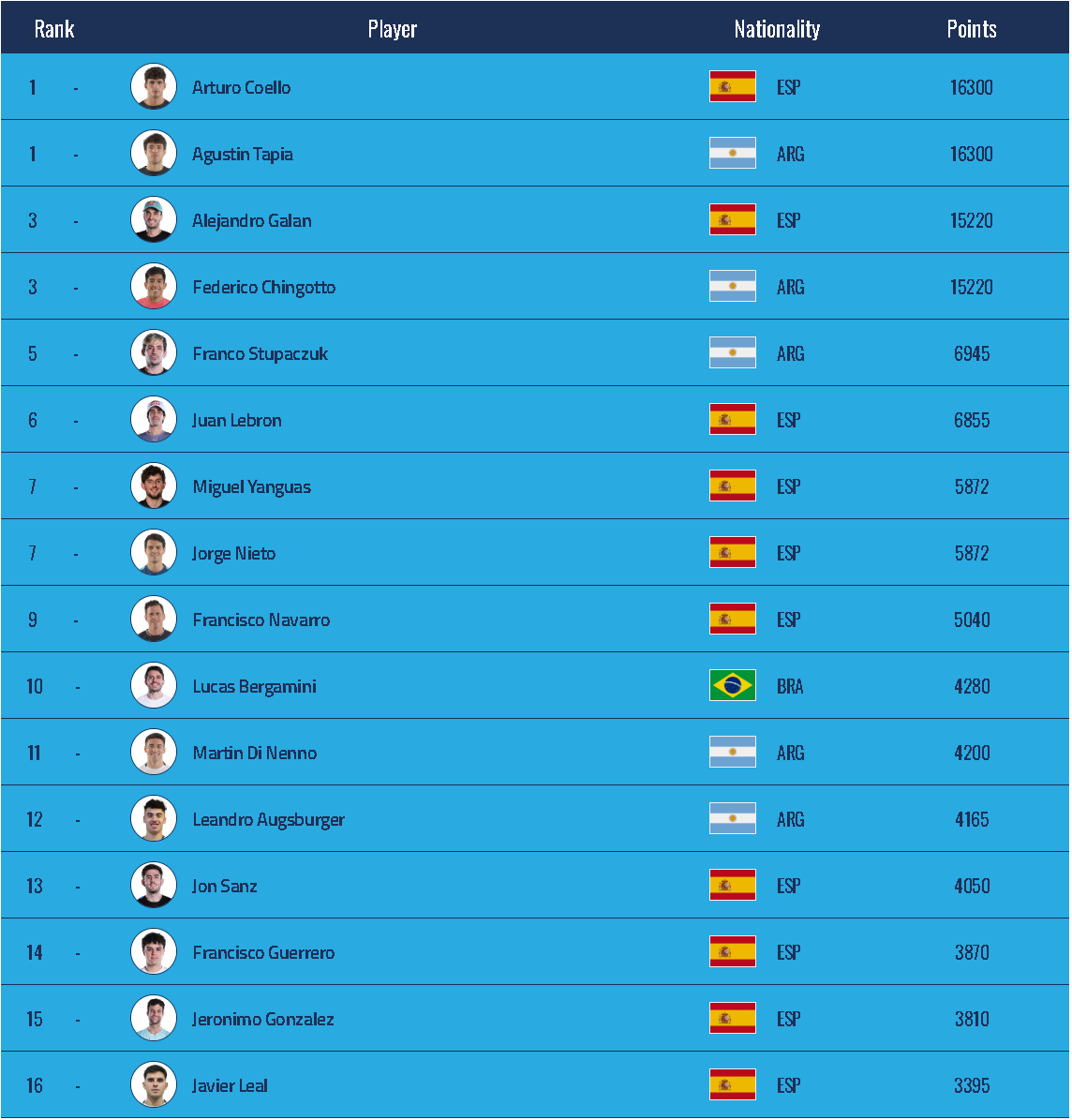 Erwähnenswert ist auch die Situation von Tolito Aguirre et Gonzalo AlfonsoLangjährige Hauptakteure der Tour A1 PadelDie beiden Spieler befinden sich derzeit bei Platz 19 und 21 in der WeltranglisteTrotz eines vielversprechenden Saisonendes verpassten auch sie den Einzug ins Finale.